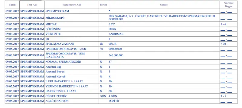 Sperm testi sonuçları için banada değerli yorumlarınızı yazar mısınız?