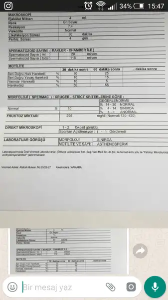 Eşimin sonucunu da yorumlar mısınız? Bu defa farklı hastanede yaptırdık. Yöntemde farklıymış krıger diye bir yöntemmiş.