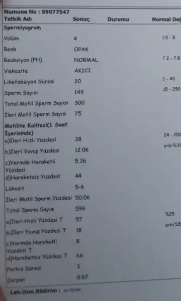 testin bu sonuçları çok iyi ama morfolojisinin olması lazım doktorunuza sorun biMorfolojiye bakmamışlar sanırım başka yok çünkü :/