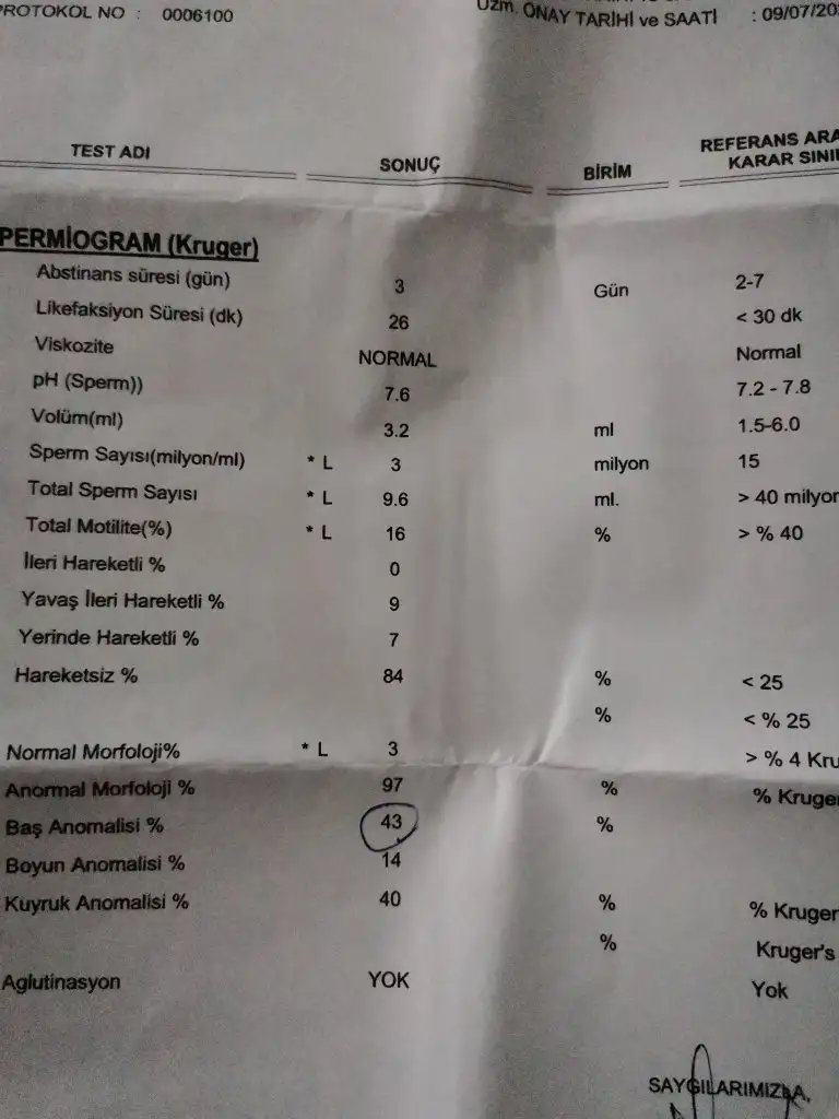 3 ayda birde sperm yenileniyor yani mutlaka bu değerlerde oynamalar olacak sonç bu çıktı diye moral bozmayın yükselecek bkaç aya :)