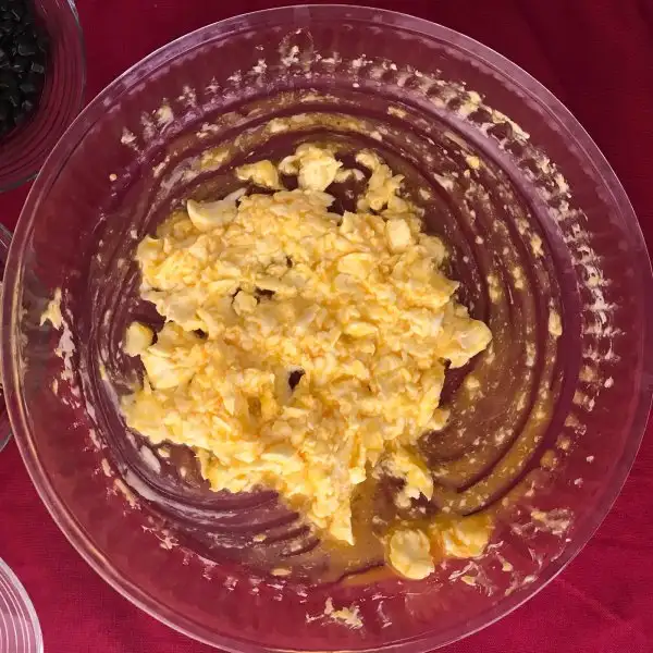 Öncelikle tereyağ ve yumurta sarısını güzelce yoğuralım.