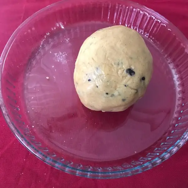 Çikolata ısıya dayanıklı olduğu için hemen erimeyecektir ama biz yine de uzun uzun yoğurmayalım hızlı hamuru toparlayıp buzdolabında 10 dk bekletelim.