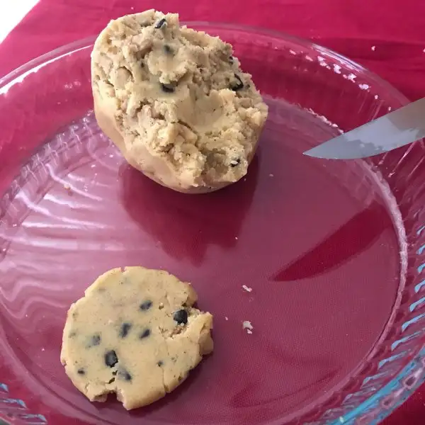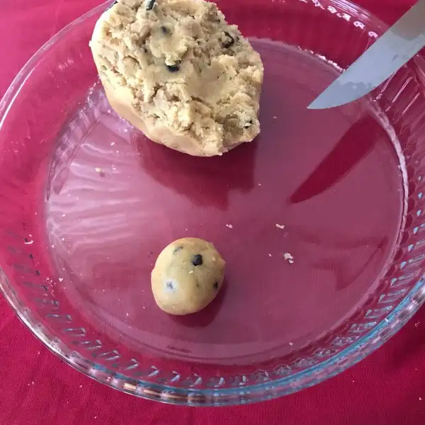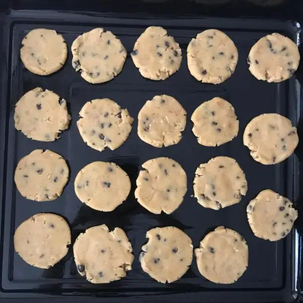 Buzdolabından çıkardığımız hamuru yağlanmış tepsiye dizelim. Ben ceviz kadar alıp yuvarlayıp düz bardakla bastırdım. Öyle şekil verdim. (Bu arada fırını çalıştıralım ısınsın, 175 derecede turboda)