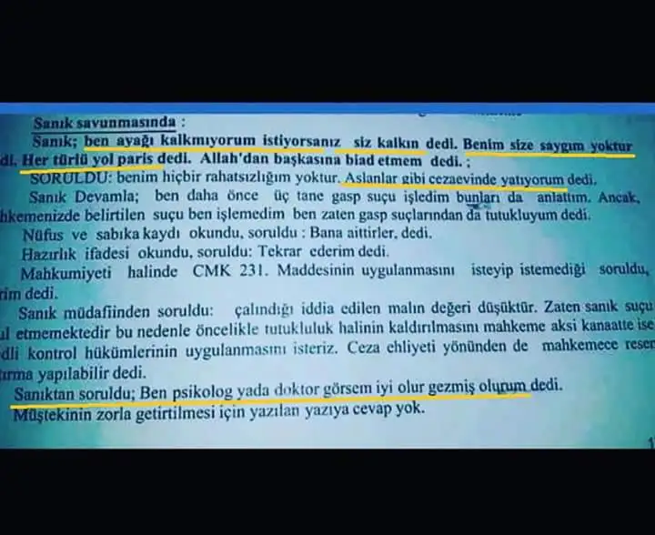 Durusma tutanagi. Sanik hakime bize her yol paris diyo :))Bu ne ki