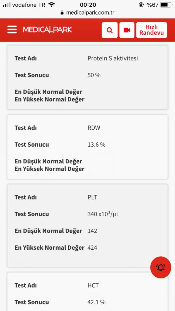 Enfeksiyon geçirdim mi İnan bilmiyorum ama kürtaj sonrası arttı. Çünkü gebeyken Eylül’de 0.54 tü o değer. Bana antibiyotik de vermemişti kürtaj sonrası muhtemelen enfeksiyon oluştu ondan arttı. İdrarda da 600 bakteri çıktı çünkü kürtajdan önce oda yoktu.Canım protein c normal ama protein s bir tık düşük geldi ama çok yüksek bir oran değil.Doktor bu değerleri birlikte değerlendirecektir.Ayrıca crp bi tık yüksek yakın zamanda enfeksiyon mu geçirdin?onun dışında diğer değerler normal görünüyor.