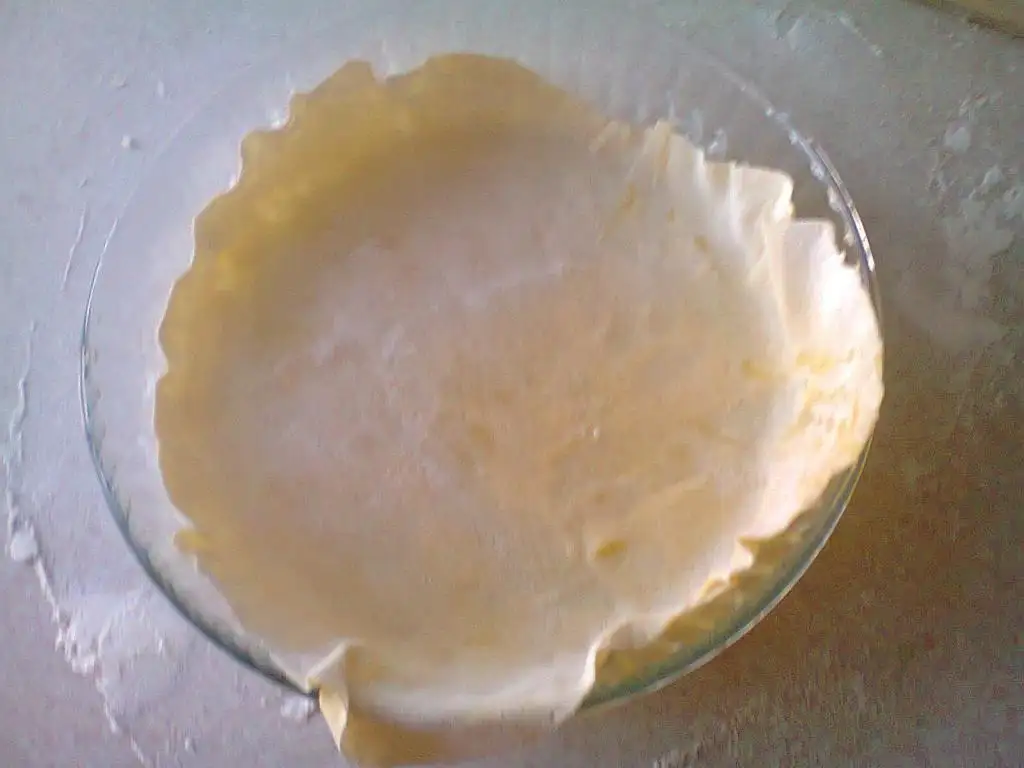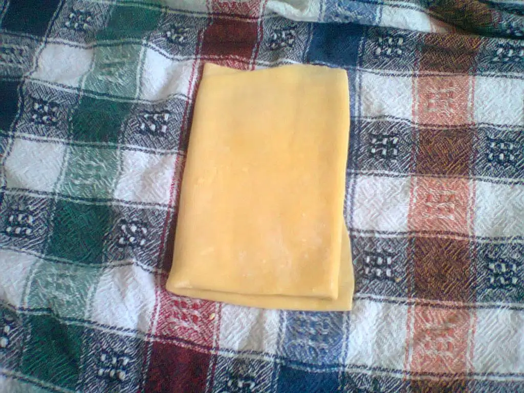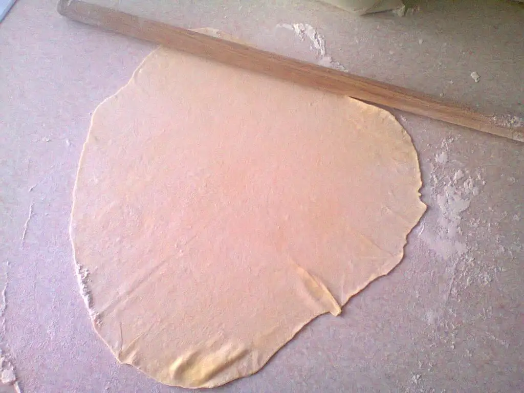 ilk açılan hamur tereyağıyla yağlanan tepsiye yayılır. Üzerine eritilmiş tereyağı sürülür.