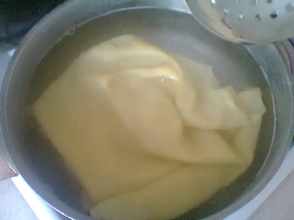Yufkalar tek tek önce sıcak suya bırakılır.