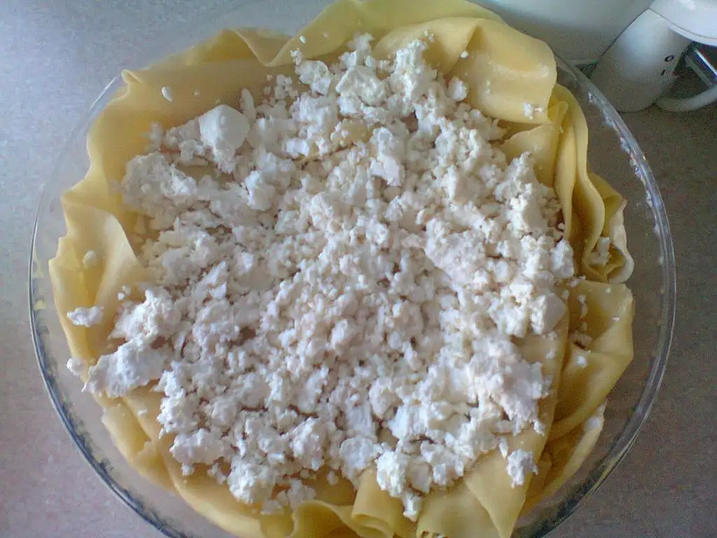 En alttaki yufkayla beraber 5. yufkada lor ve b. peynir yayılır.