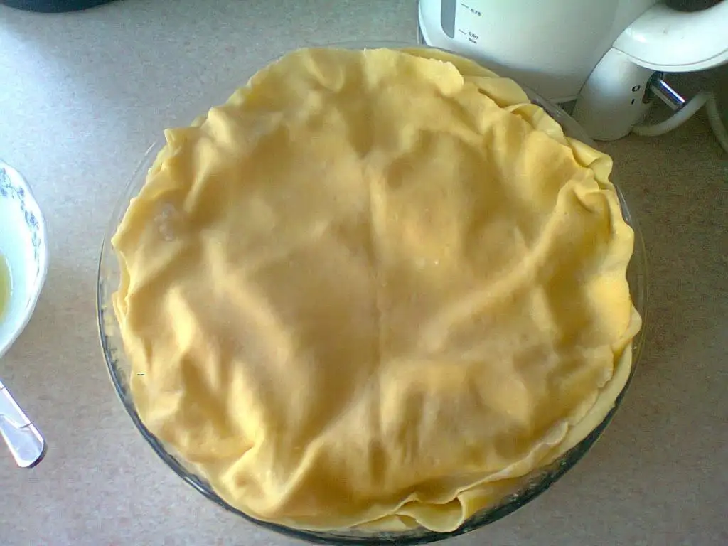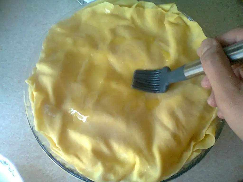 Tepsideki ıslatılmamış yufkanın üzerine serilir.
