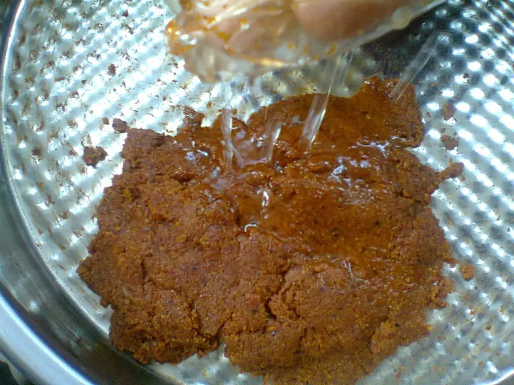 Tepsiye aldığımız malzemeler birbiriyle harmanlanır ve yoğurmaya başlanır. Malzemeler özleşince içerisine yavaş yavaş isotlu limon suyu karışımı eklenerek yoğrulmaya devam edilir.