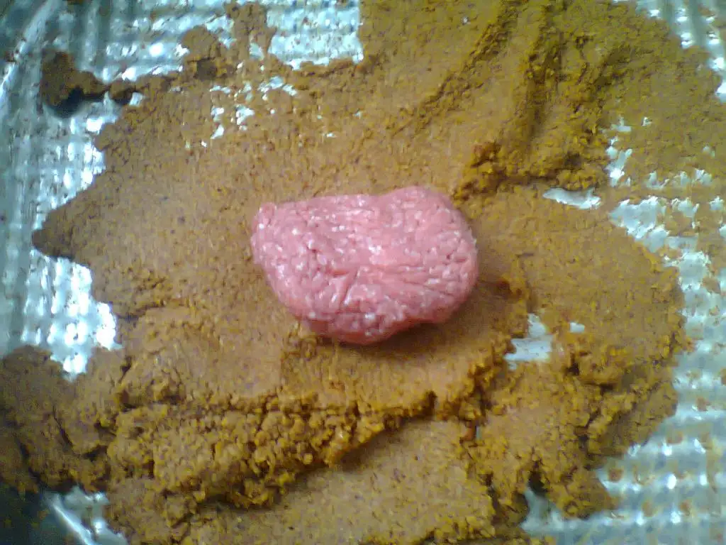 PÜF!!!köfteyi top haline getirip sertçe tepsiye vurun çatlamazsa olmuştur.