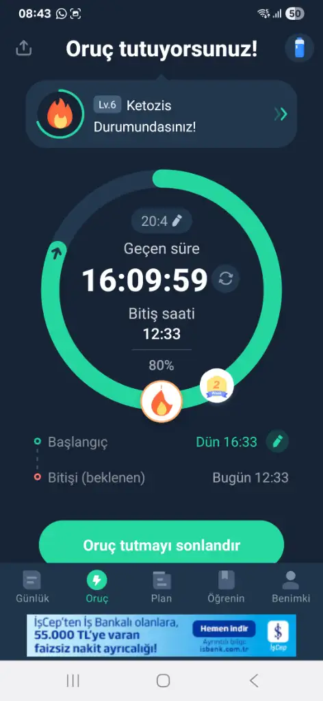 Öncekilere göre oldukça zor geçti.Zaten kilom pek olmadıgı için haliyle yag oranımda az ama açlıga alışkın oldugum için öyle ayılma bayılma vs yasamadım.Tabiki enerji düşüşleri oldu :)