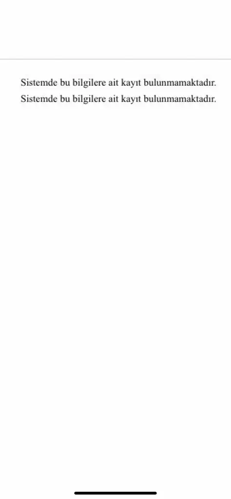 Böyle bir hata alıyorum sonuç için kızlar karşılaşan var mı daha önce ? Sistemde bu bilgilere ait kayıt bulunamamıştır diyor
