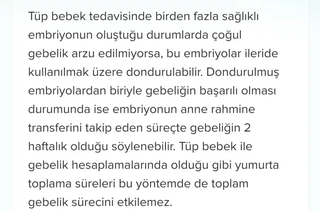 Lab. ortamında 5.güne gelip rahme yerleştirilen embriyo aslında dogal yolla 2 haftalık hamileliğe denk geliyor.