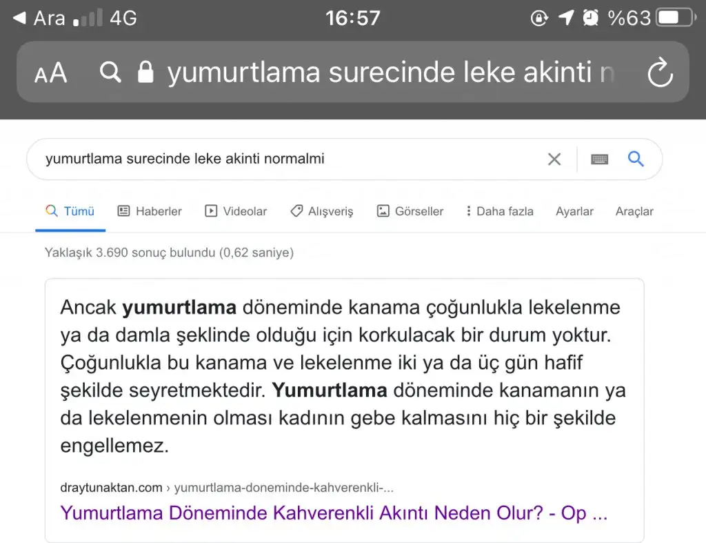 Yumurtlama dönemi olurmuş arada doktorum endişe etme demisti bana