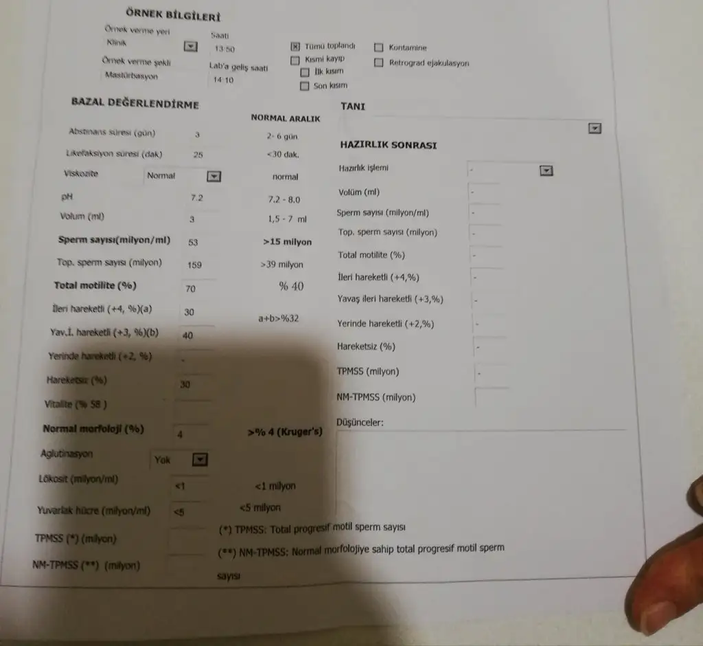 Kızlar ocak ayında ki sperm testi böyleydi bir bakar mısınız dna hasar testi de yaptırmak istiyoruz içimiz rahat etsin diye