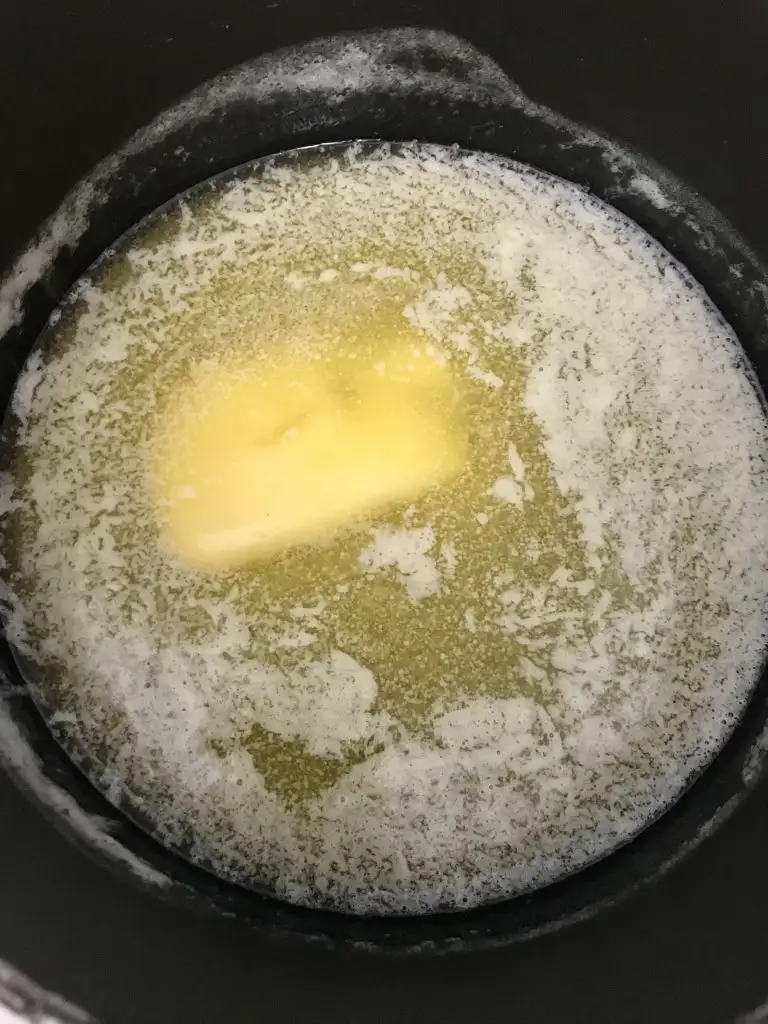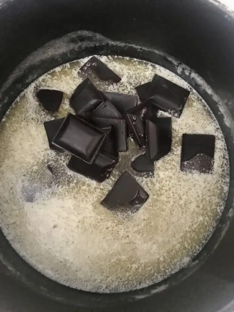 Tereyağını ocakta erittikten sonra içine bitter çikolataları atıp ocağın altını söndürüyoruz. Çikolatalarımızı eritmek için bu ısı bize yeter çünkü. Karıştırıp homojen hale getiriyoruz.