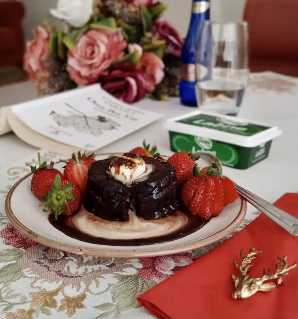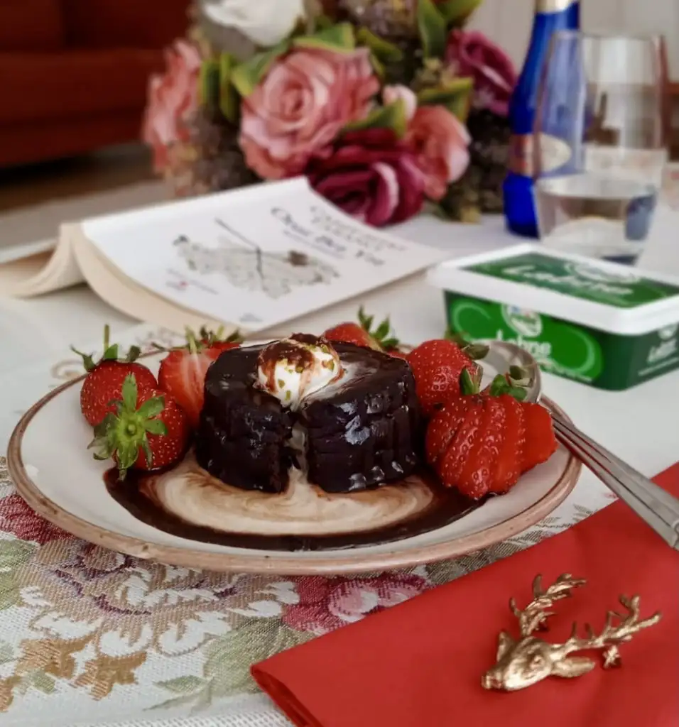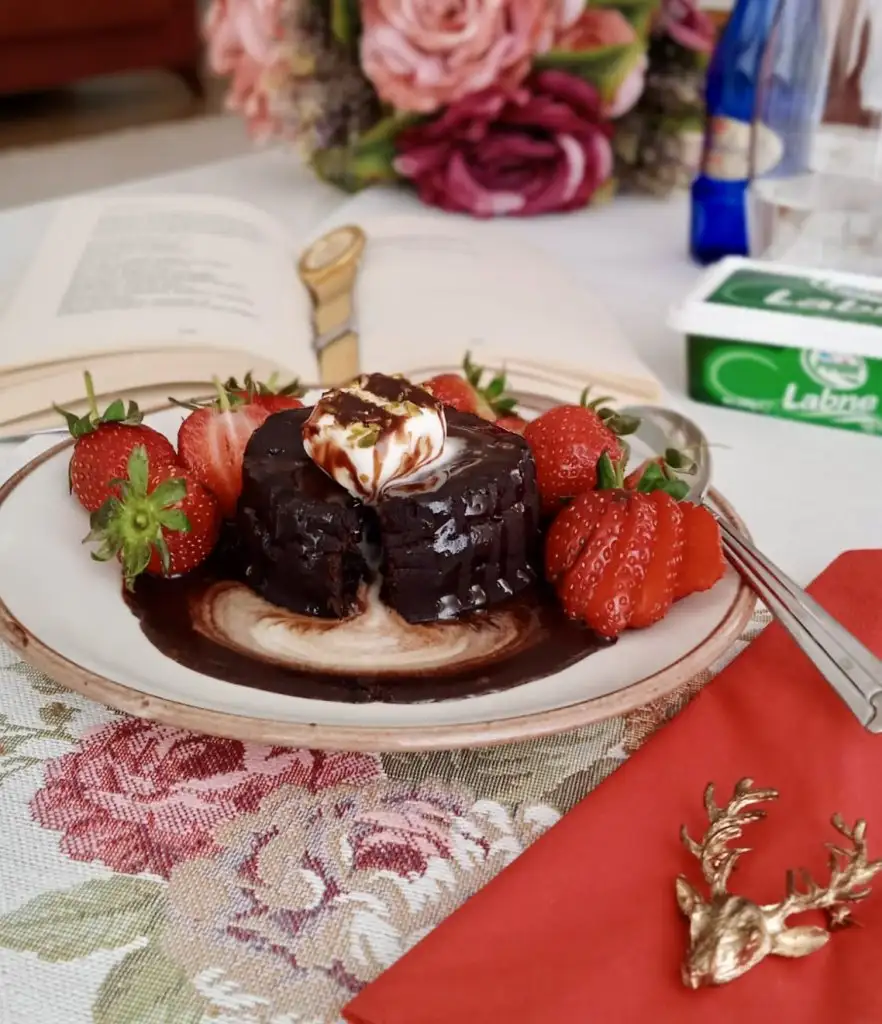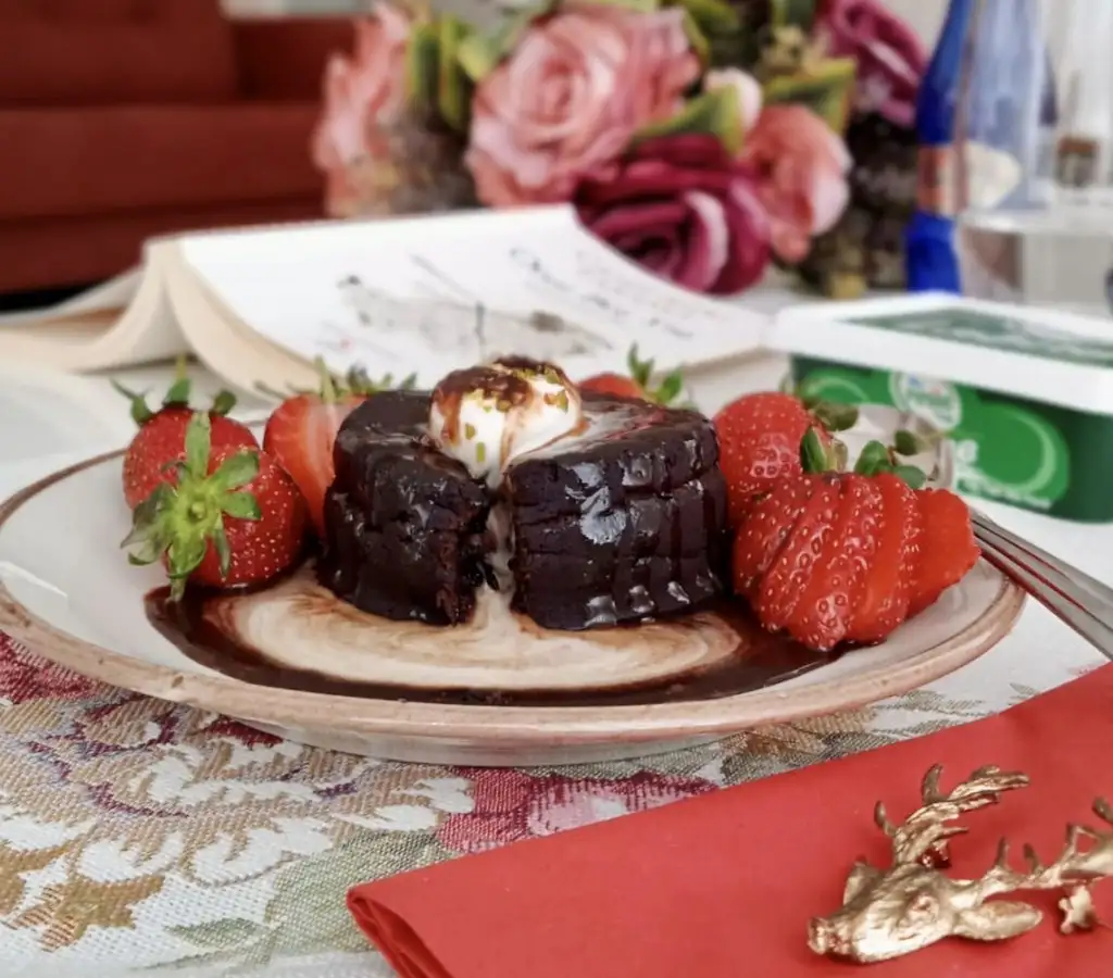 İçinin fazla akışkan olmasını istiyorsanız 190 derece fırında 8 dakika pişirin. Ama o bana biraz çiğ kalmış gibi geliyor. Fırında 10 dakika durursa daha rafadan bir kıvamı oluyor içinin. Fırından alıp dondurma ve meyveyle servis edebilirsiniz. Gerçi öyle dümdüz de yiyebilirsiniz. Paşa gönlünüz bilir. Herkese afiyet olsun.