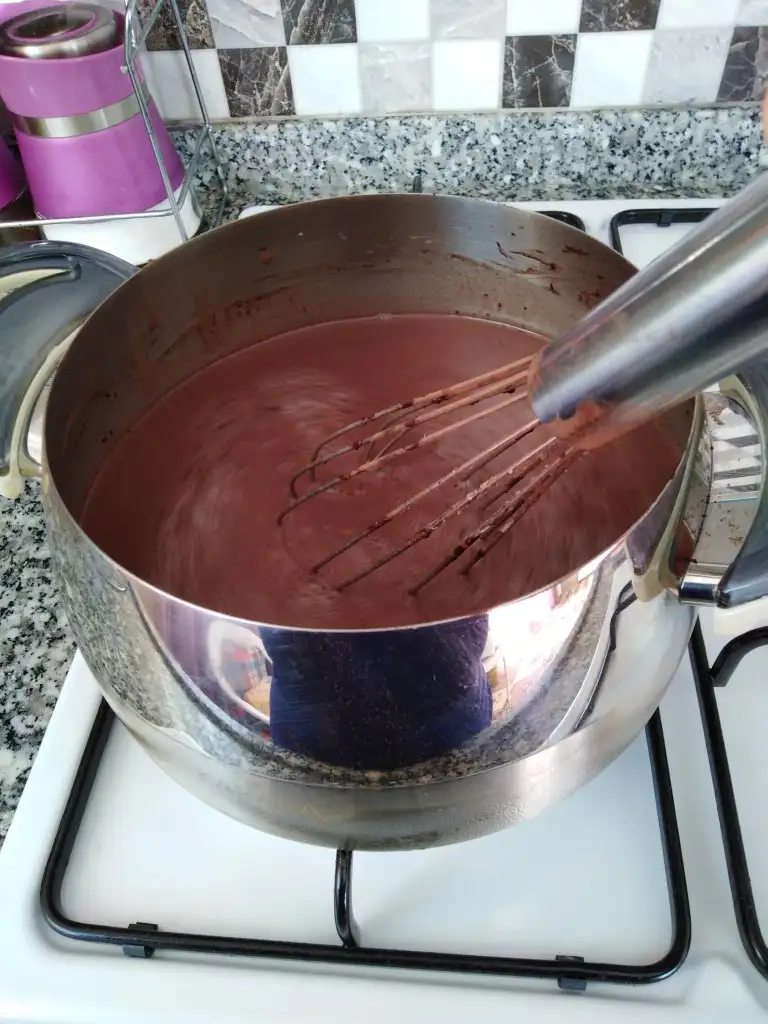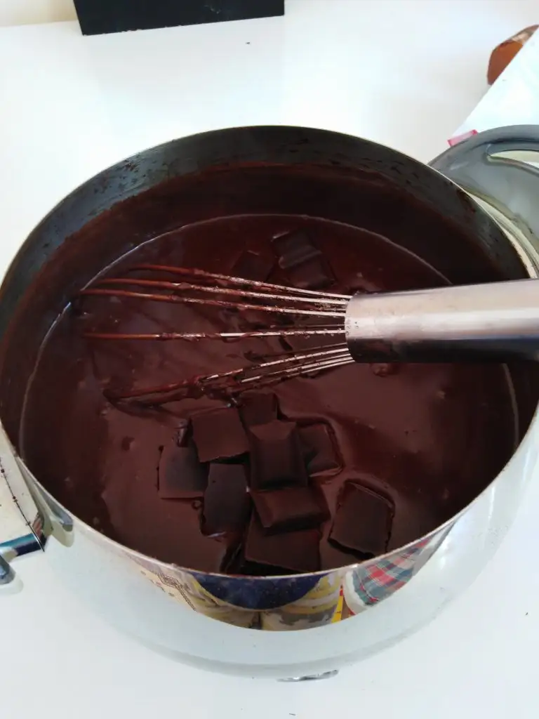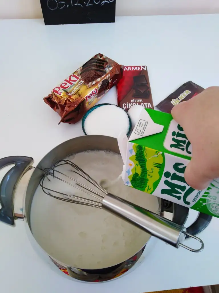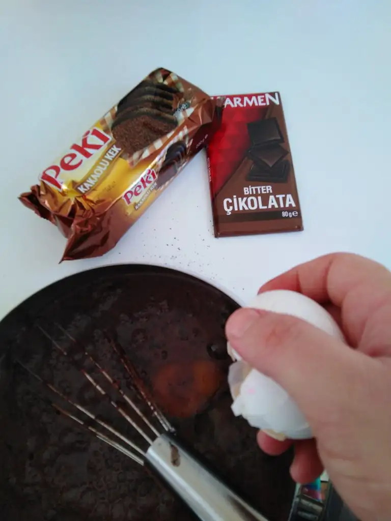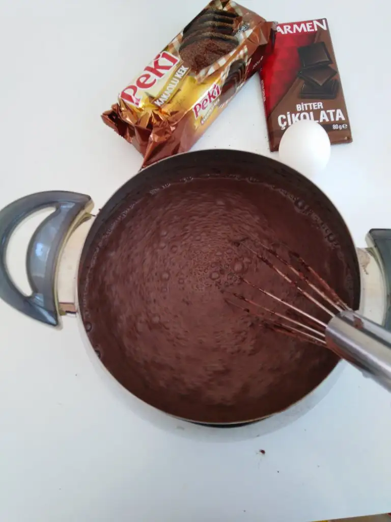 İlk sıcaklığı geçince bitter çikolatamızı ekleyip karıştırıyoruz.