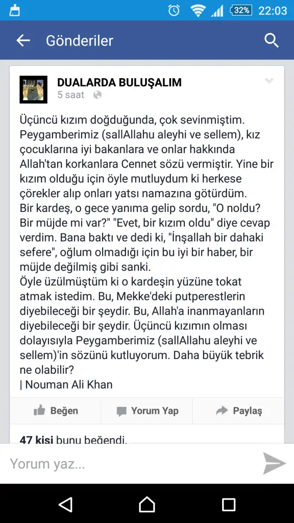 Hayat hiç bir şeye üzülecek kadar uzun değil kaldı ki evladimaza üzülüyoruz niye kız diye 3kiz annesi olarak iyiki olmuşlar diye hergün şükür ediyorum 4gebeligim bir süpriz di eşime buda kızdır aldiralim dedim de 10tane kızım olsa yine öyle bir şey yapmam demişti çocuklarımıza biz sahip çıkacağız gerisi herkes boş varsın onlar oğlan dogursun bizde kız Rabbim hayırlısı nı versin Kızlarımız Başımızın tacı onların Şehzade si varsa bizimde prenseslerimiz var