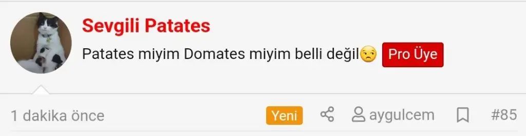 Komik olan da o zaten. Ezbere yorum olduğu için güldümHa bide kullanıcı ismimde "patates" yazıyor, domates sizin okumamanızdan kaynaklı bir sorun.