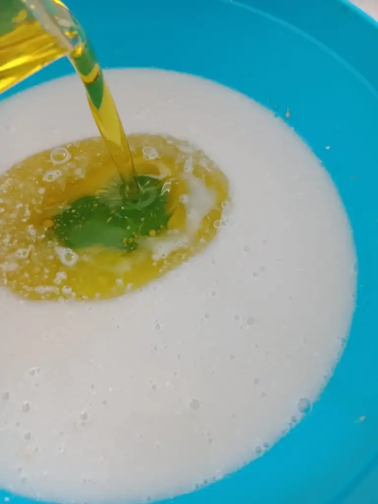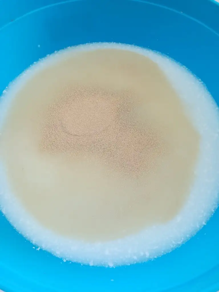Derin bir kaba ılık süt, su, şeker ve mayayı ekleyin maya 5-10 dk bekletin. Ardından yağı ekleyin.