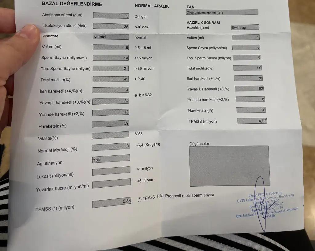 Canım ben sperm testinden çok anlamıyorum buraya atayım sen bir bak. Ama tedavisiz zor demişlerdi bizede.Canım eşinin sperm sonucu nasıl çıkmıştı bende 10 ay boyunca denedim hormon testleri ultrason normal çıktı bu ay eşimde test verdi sonucu kötü geldi tüp Bebek dediler ama baya umutsuz konuşuldu