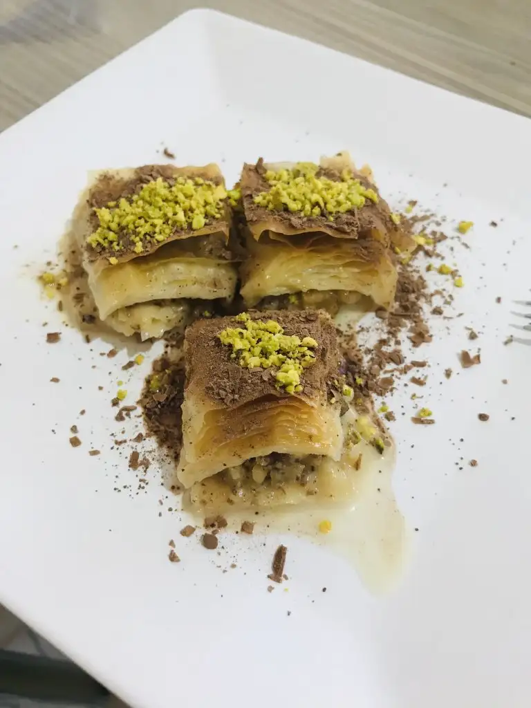 İşte olmayan baklavam Altı çok ince kalmış. Ben bi 10-12 kat koyacaktım. Adamla birlikte izledik videoyu. Yok o kadın 6 kat koymuş da biz de 6 kat koyacakmışız da al, koyduk 6 kat. incecik olmuş ama tadı çok güzel