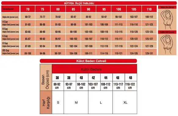Bu talodan bedeninizi ve cup ölçünüzü öğrenebilirsiniz.