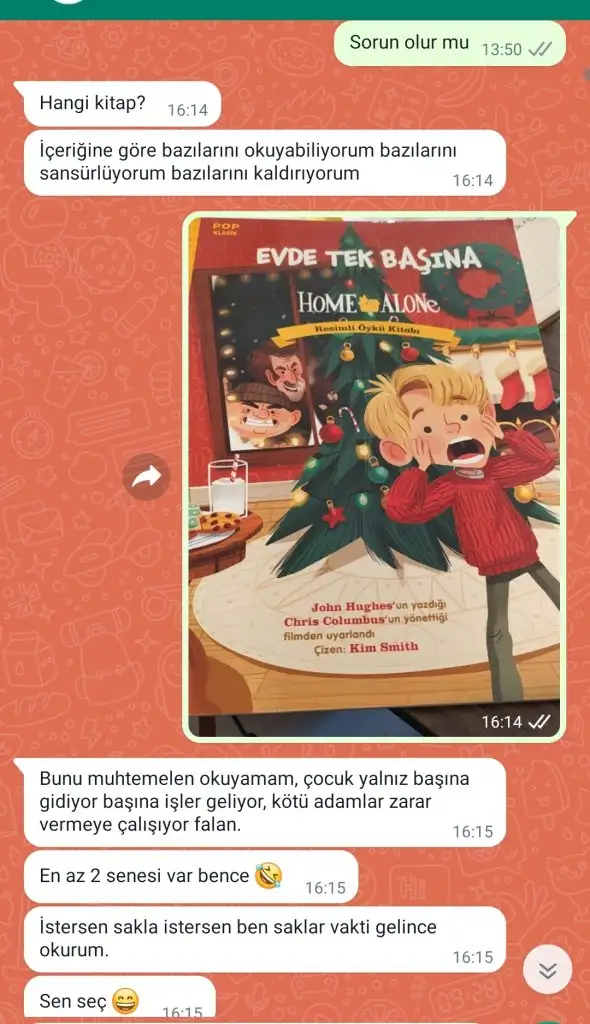 Daha sonra ablam da kitabı okudu, istişare ettik onay çıkınca sansurleyip bizim kıza okuduk.