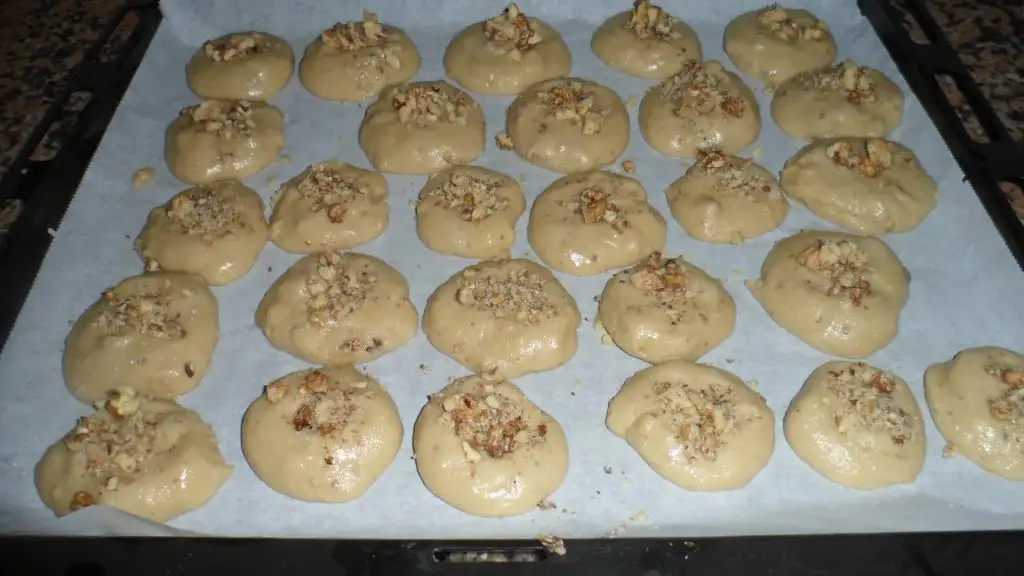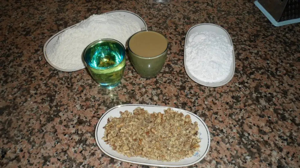 Sonra ilk pudra sekeri daha sonra unu eklenir karistirilmadan once kirilmis cevizler eklenir