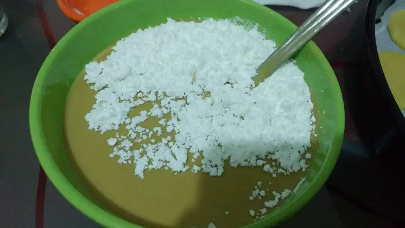 Bu arada iç harcımızı hazırlıyoruz. Tahin ve pudra şekerini ekleyerek bulamaç haline getiriyoruz.