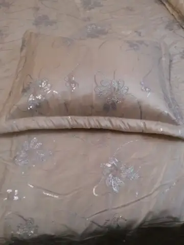 Oldukca genis kocaman bir yatak ortusu ikide yastik kilifi var resimde goruluyor.100tl.biliyorum cok ucuz ama olsun.yeni evlenecek arkadas isterse kina tepsisi eldiven ortu setini hediye edebilirim yaninda
