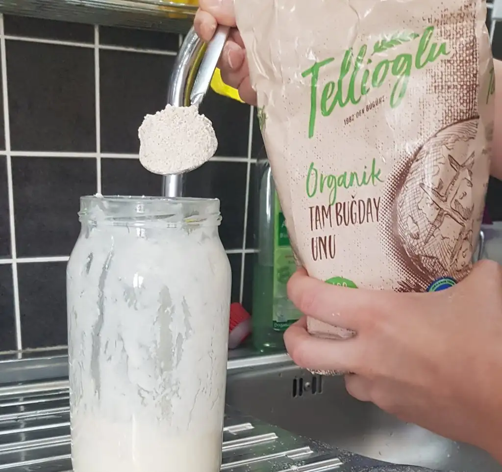 2 yemek kaşığı un (Ben 1 kaşık normal un ,1 kaşık tam buğday unu kullandım)