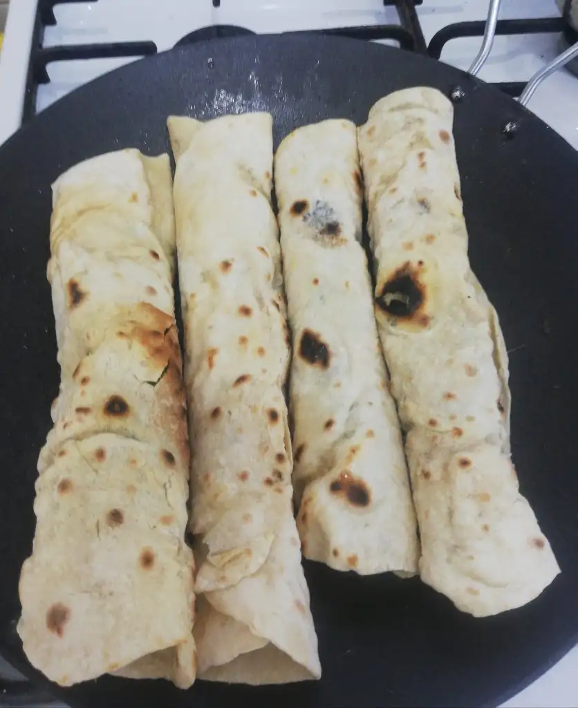 Lavaslarimizi sarıp sacda kalan yağda dürümlerimizi ısıtıyoruz.