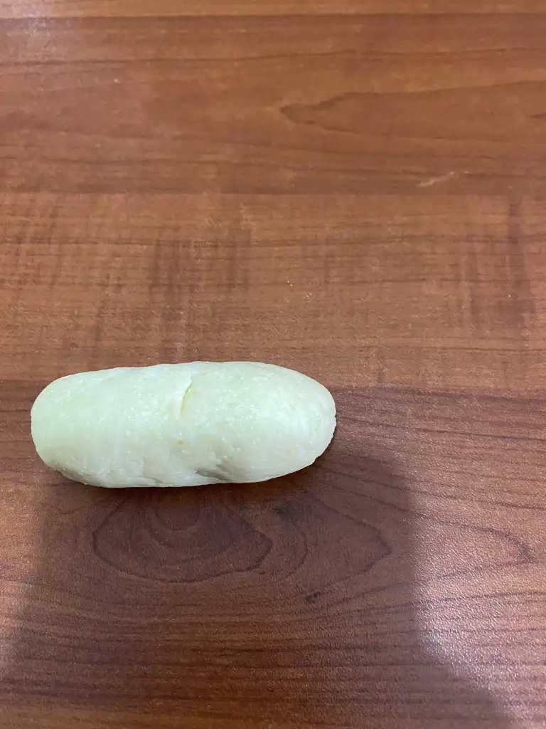 Ceviz büyüklüğünde beze alıp, 10 cm uzunluğunda şerit yapıyoruz.