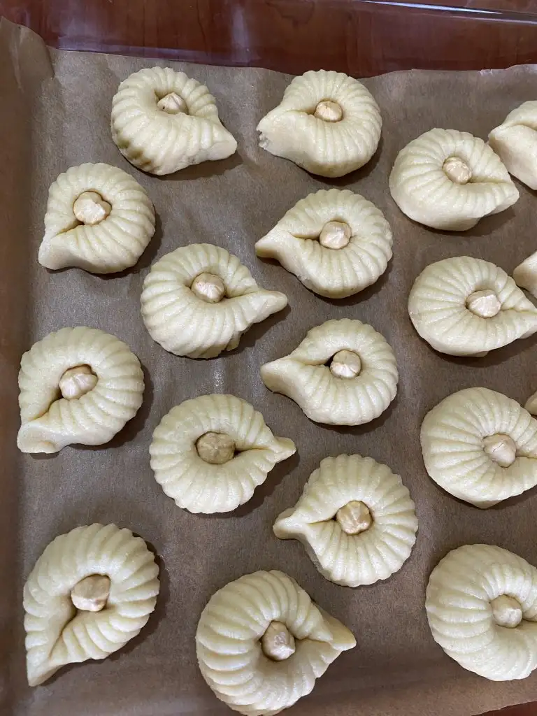 Tarağı üzerine bastırıp, fındığı ortasına yerleştirip, damla şeklinde hamurlar elde ediyoruz.
