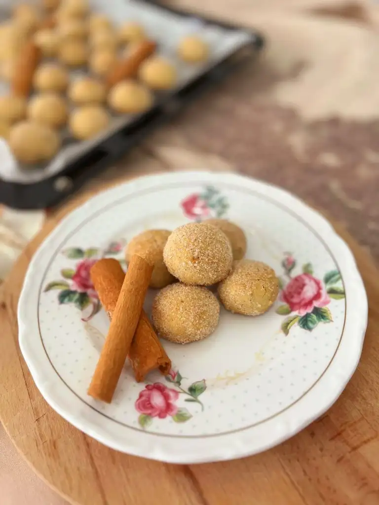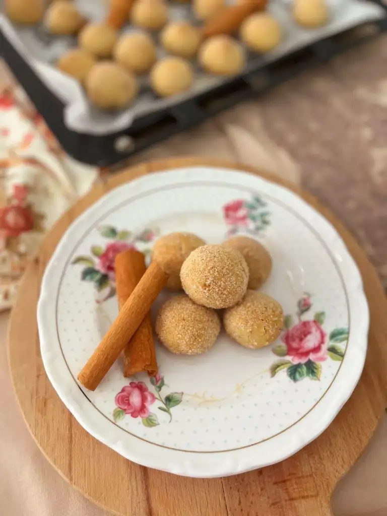 • Pişen kurabiyeler sıcakken tarçınlı toz şeker karışımına bulanır.