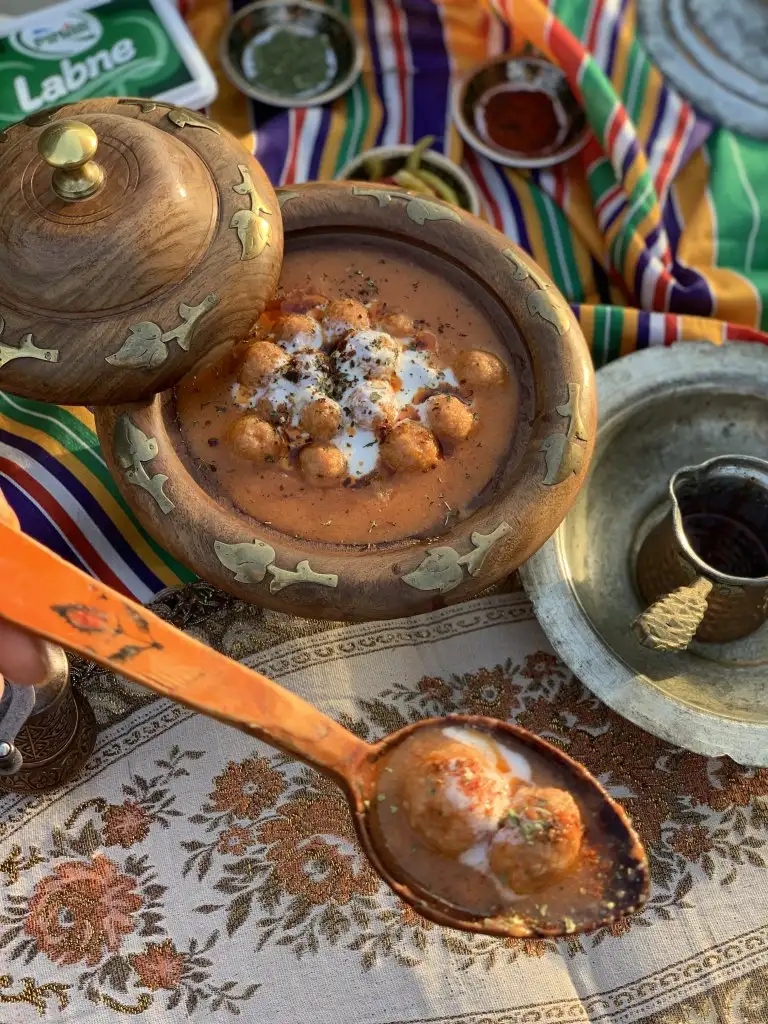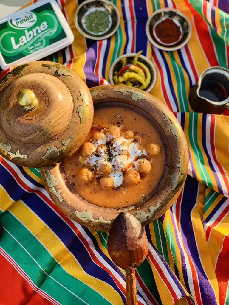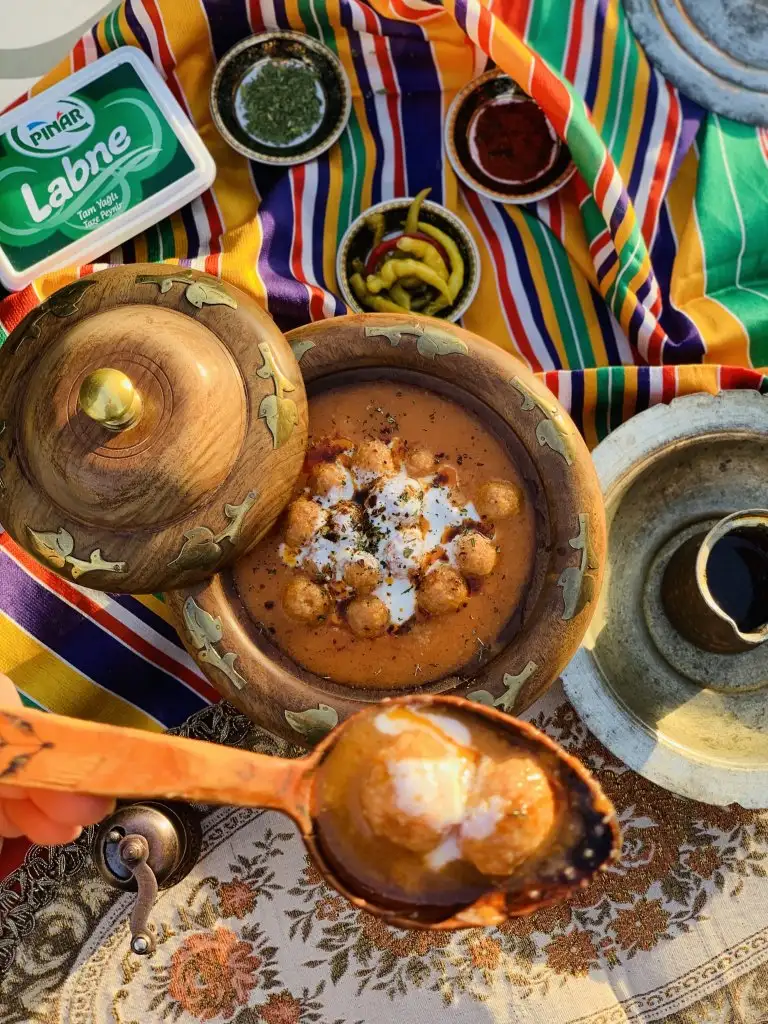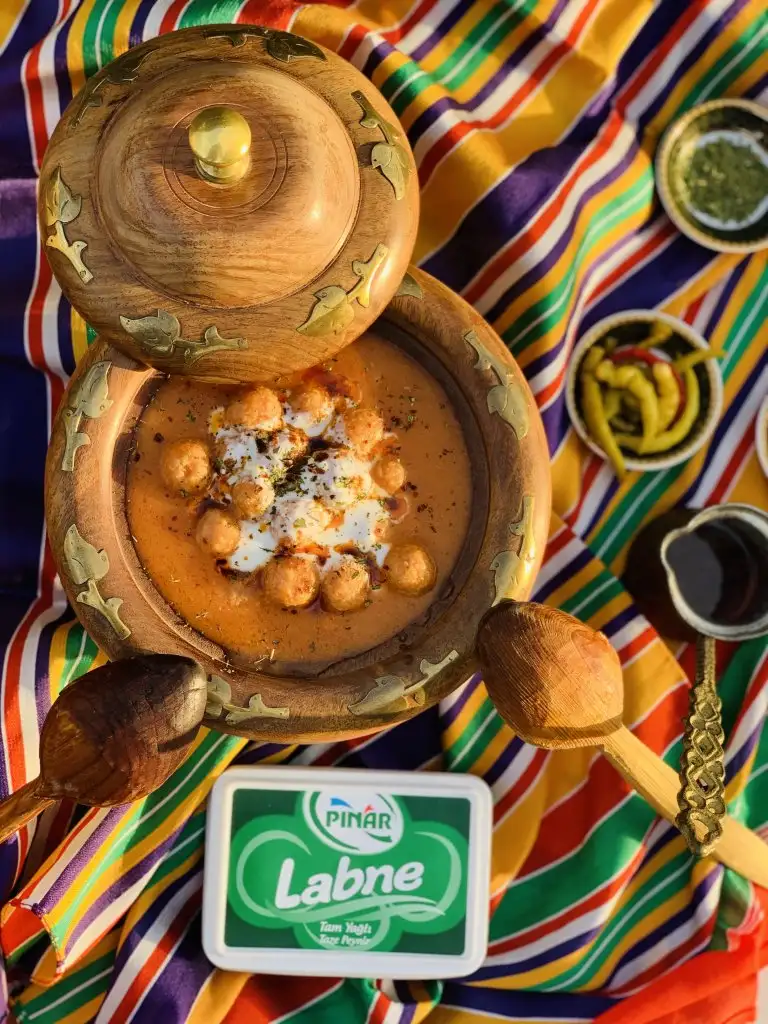 6- Servis edeceğiniz tabağa yemekten koyun üzerine sarımsaklı, labneli yoğurdu dökün.