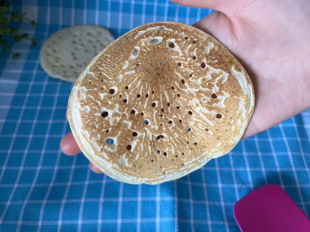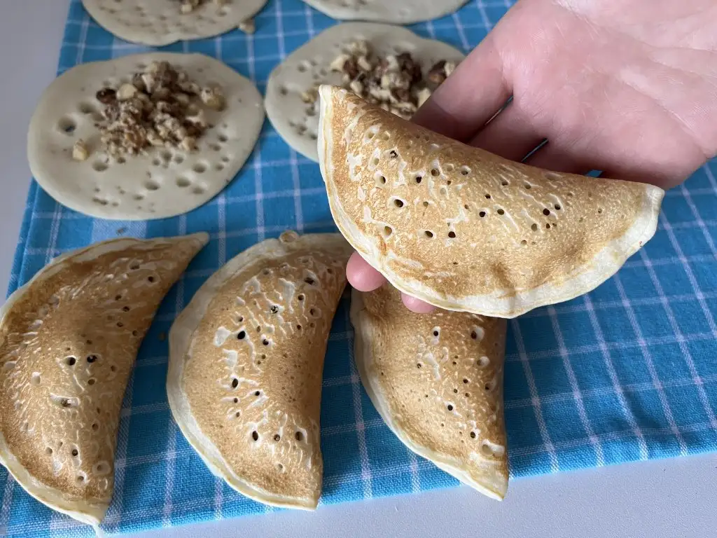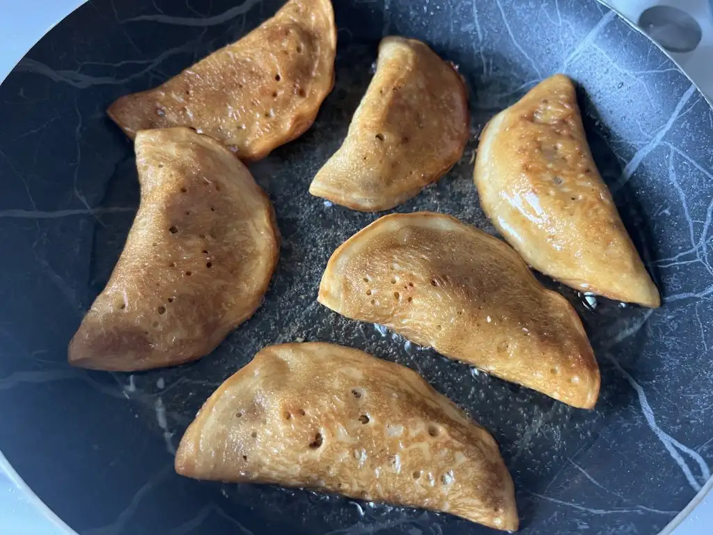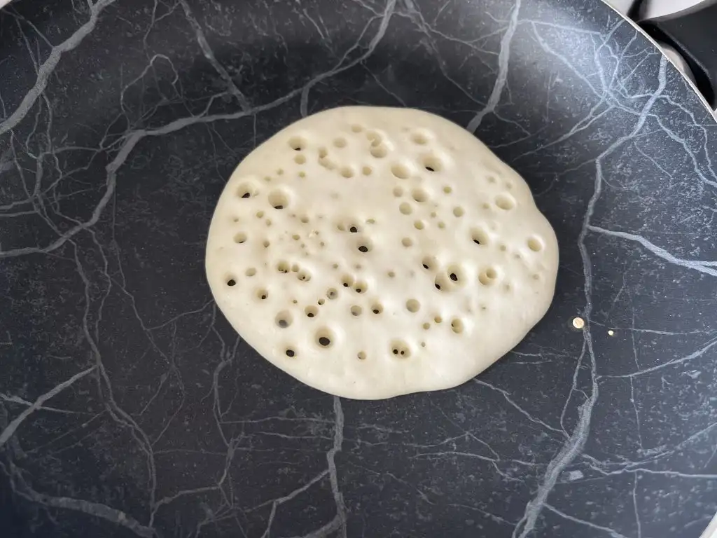 Yanmaz tavada 1 kepçe ile alıp tek tarafını pişirelim. Diğer tarafını pişirmiyoruz.