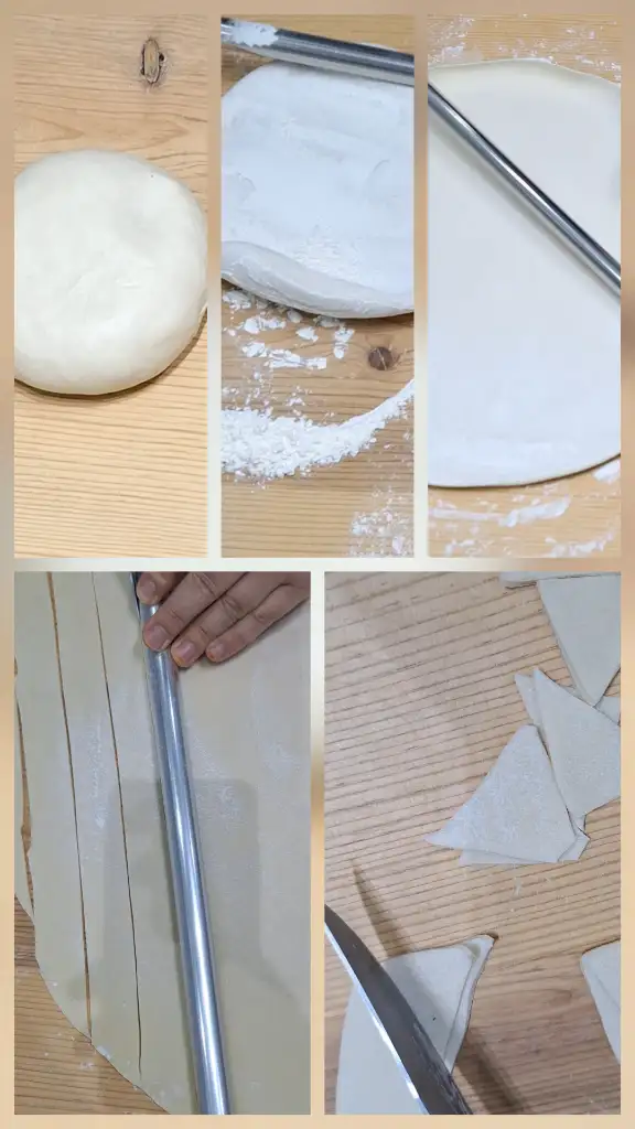 Yufkayı önce şeritlere, sonra görseldeki gibi küçük üçgenler veya kareler elde edecek şekilde kesin.