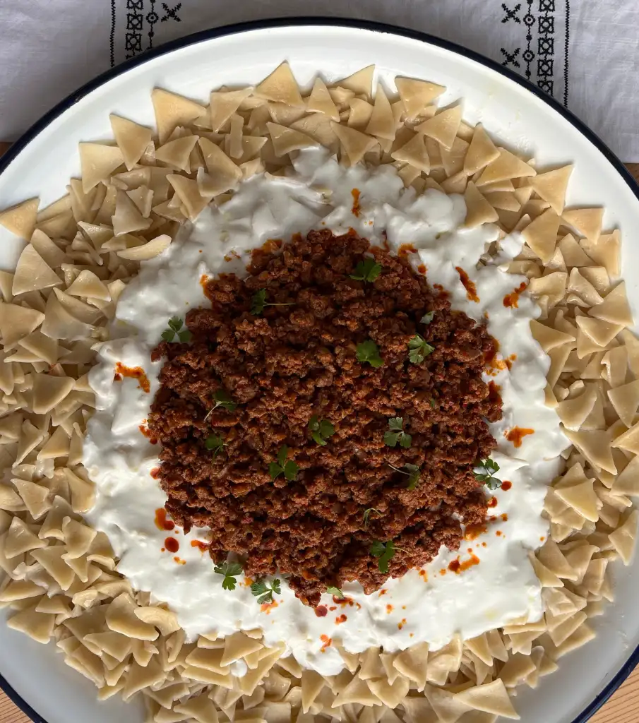 yada Türkmen mantısı olarak da bilinir) hamurları tek tek kapatmakla uğraşmak istemeyenler için hem daha pratik hem de oldukça lezzetlidir.