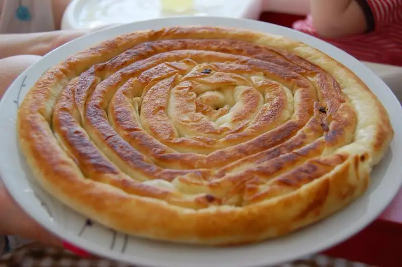 Bir tavada tereyağını eritip,ocaktan alıp,ılık hale gelince üzerine yumurtayı kırıyoruzve karıştırıyoruz.Yufkayı tezgaha serip,üzerine fırça ile yağ ve yumurta karışımından sürüyoruz ve ardından ikiye bölüyoruz.Bir kasede beyaz peyniri rendeleyip ,maydonozu doğrayıp karıştırdıktan sonra yufkanın üzerine sepiştiriyoruz.Kestiğimiz yere doğru rulo yaparak sarıyoruz.Tüm yufkalara bu işlemi uyguluyoruz.Tavanın ortasından başlayarak dolaya dolaya ruloyu sarıyoruz.Üzerine çıkacak kadar soğuk su ilave ediyoruz.5 dakika suda beklettikten sonra,elimizle yufkaların üzerini kapatarak bir tarafa eğip olabildiğince suyunu döküyoruz.Üzerine ve yanlara sıvı yağ döküp, orta ateşte alt kısmı kızarınca ters çevirip diğer tarafınıda kızartıyoruz.Bir servis tabağına alıp dilim dilim servis ediyoruz.Afiyet olsun.