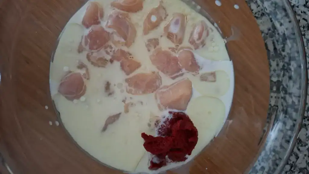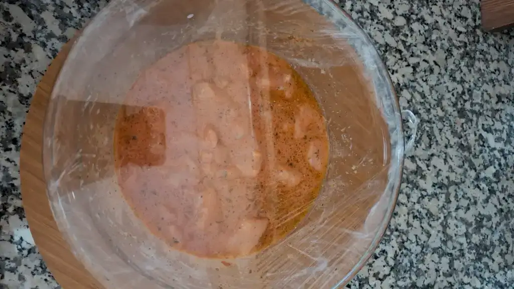 ilk olarak küp küp doğradığımız tavukları kabımıza alalım marina malzemelerini ekleyip güzelce karıştırıp kabımızın ağzını strecleyip 4-5 saat sosta dinlendirelim