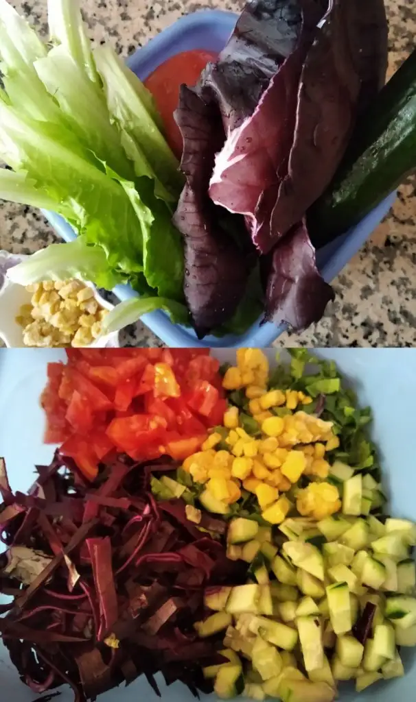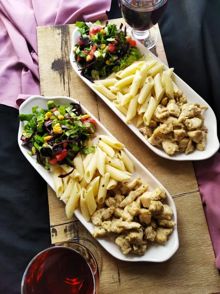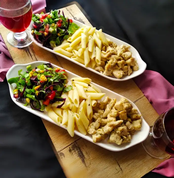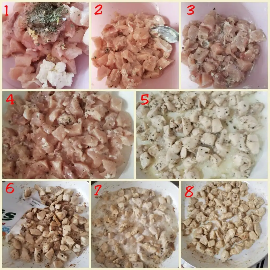Krema hariç bütün malzemeleri küp küp doğranmış tavuk gögüslerinin üzerine ekleyelim.