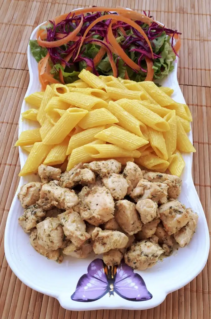 - Makarnamız hazır Hazırladığınız salatanız eşliğinde tavuk ve makarnayı servis yapabilirsiniz.