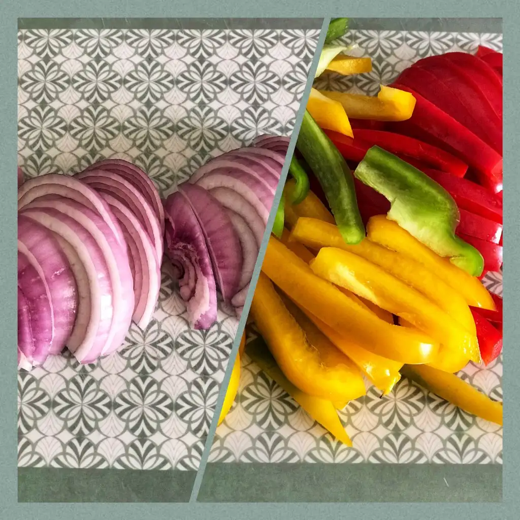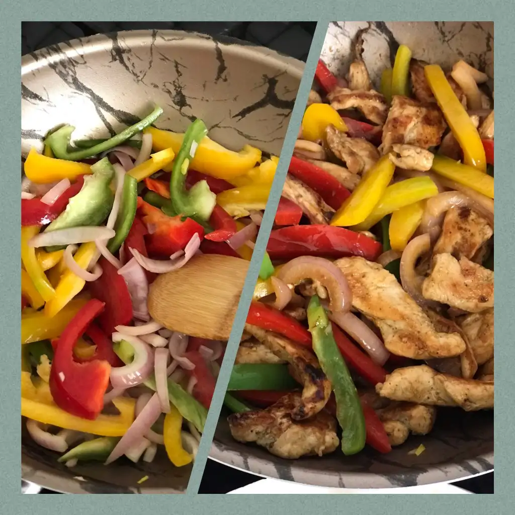 Daha sonra aynı şekilde julyen doğradıgım soğanları tavaya aldım 1 dk kadar soteledikten sonra yine julyen doğradıgım biberleri ekledim. Sebzeleri öldürmeden çok az soteledikten sonra 1 yk soya sosu ekledim ve ardından pişirdiğim tavukları ekledim.
