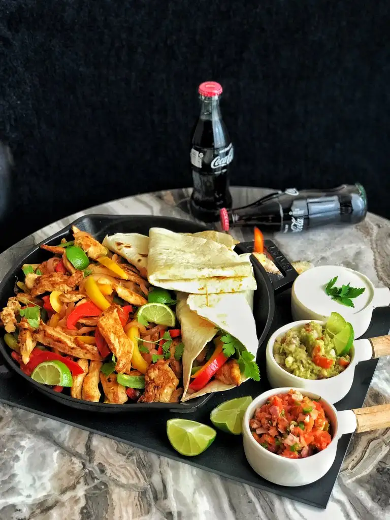 Fajitamız hazır. 3 farklı sosla servis ettim.