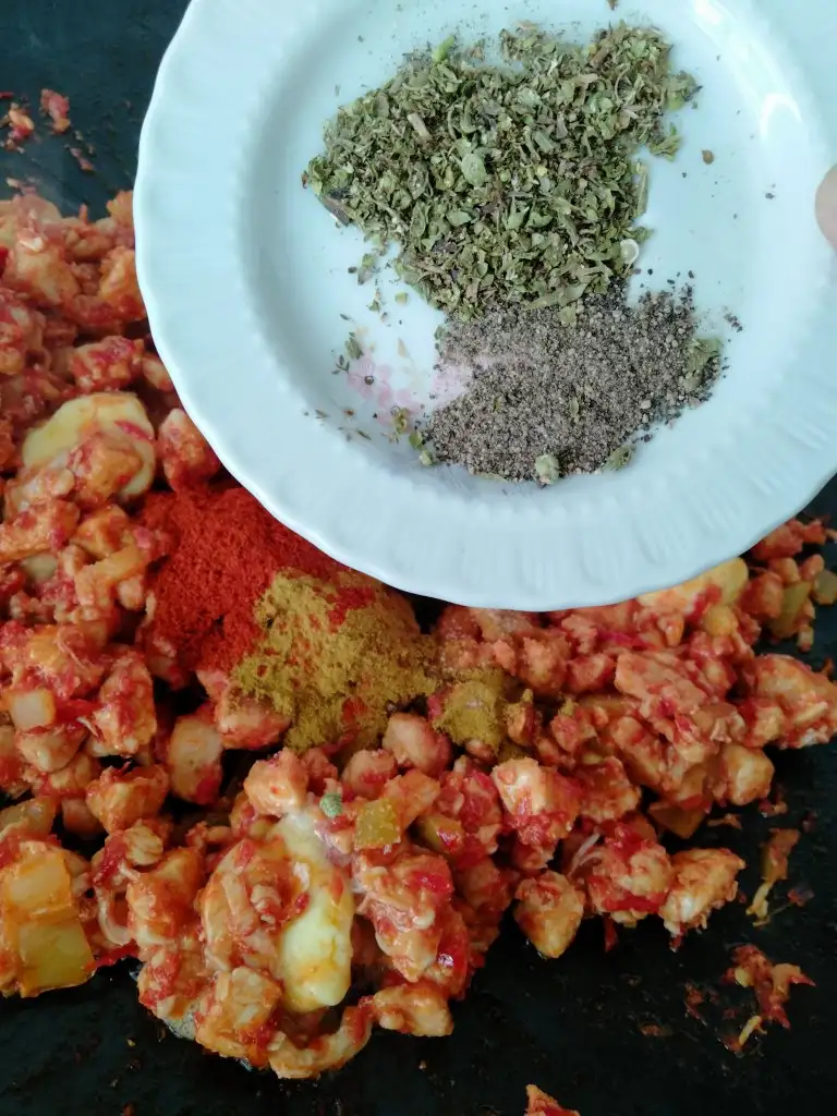 - Kimyon, toz biber, kekik, tuz, karabiber
