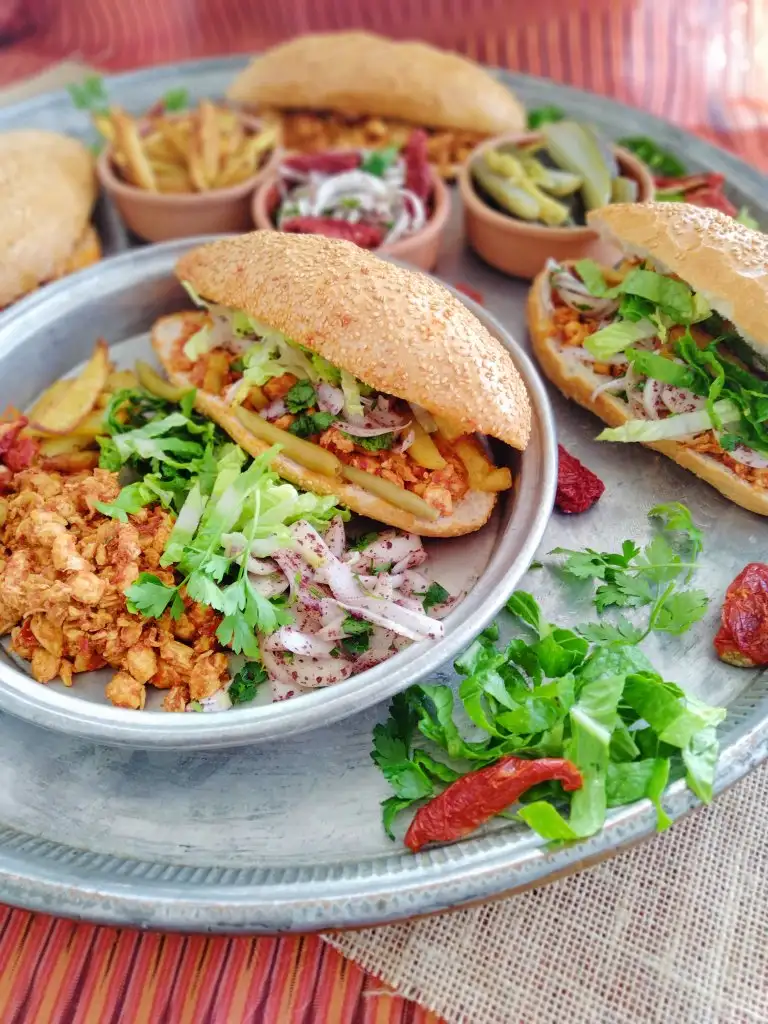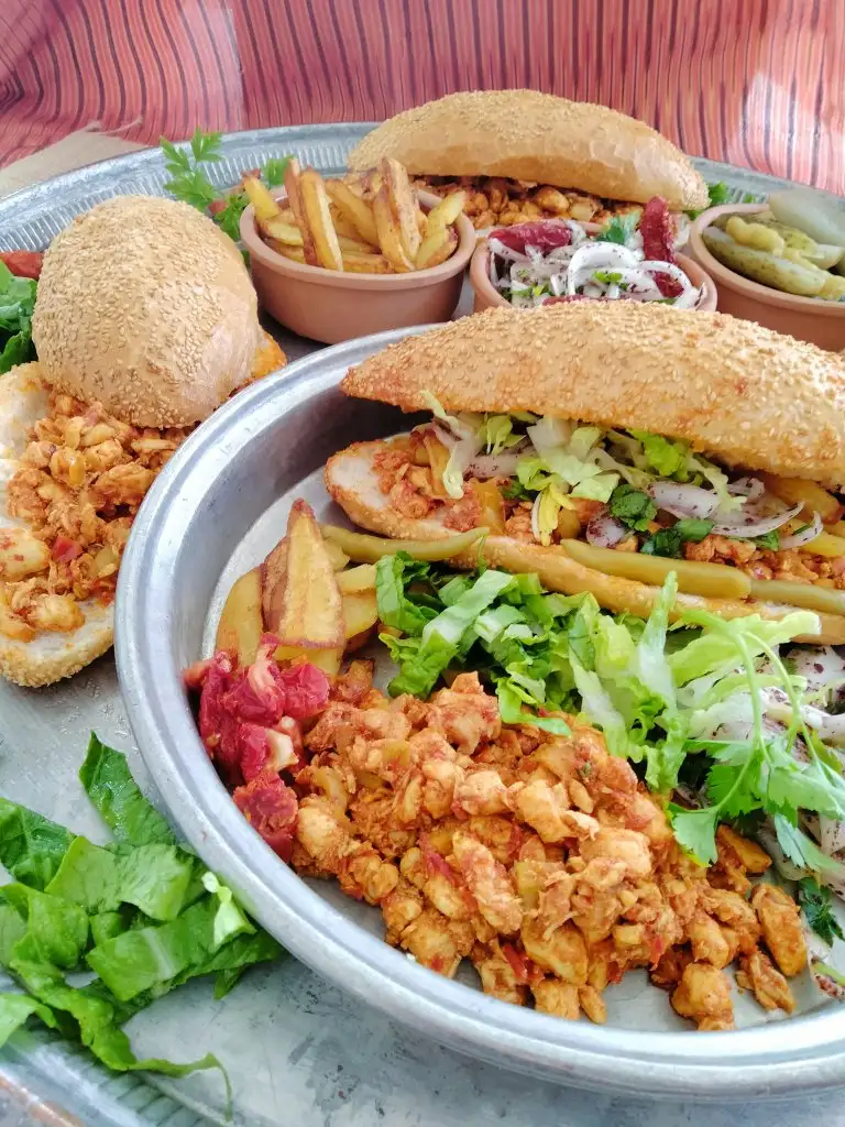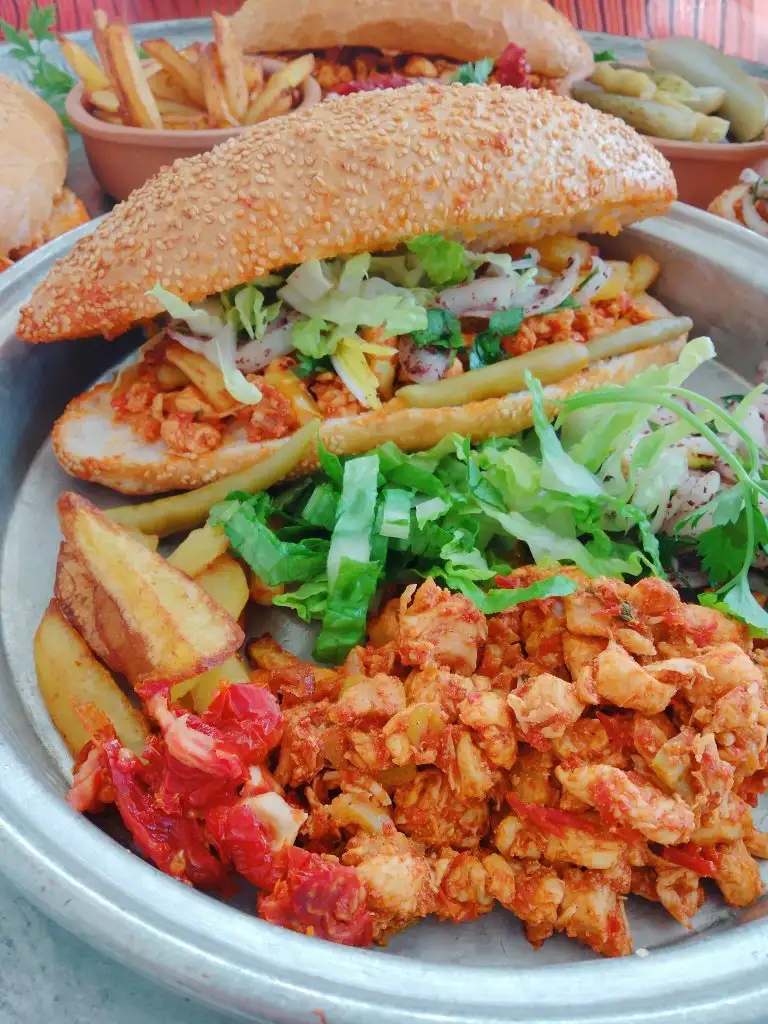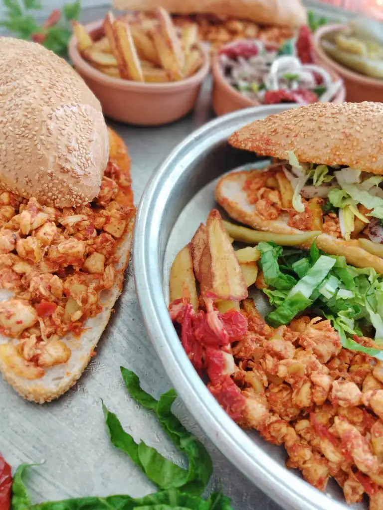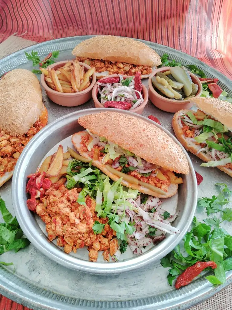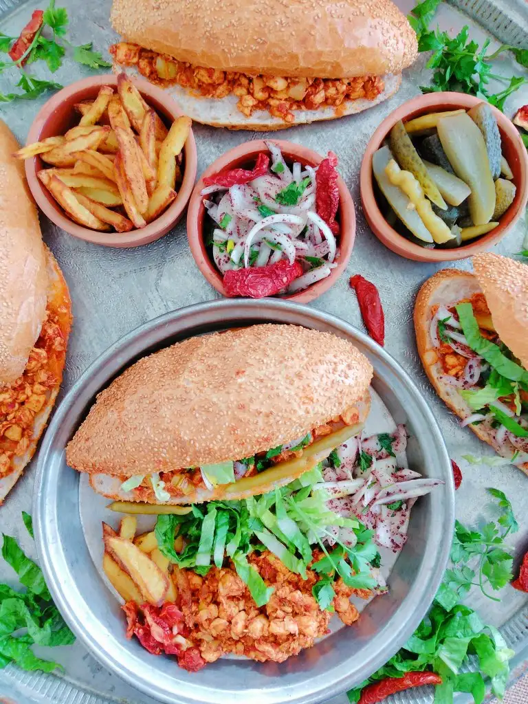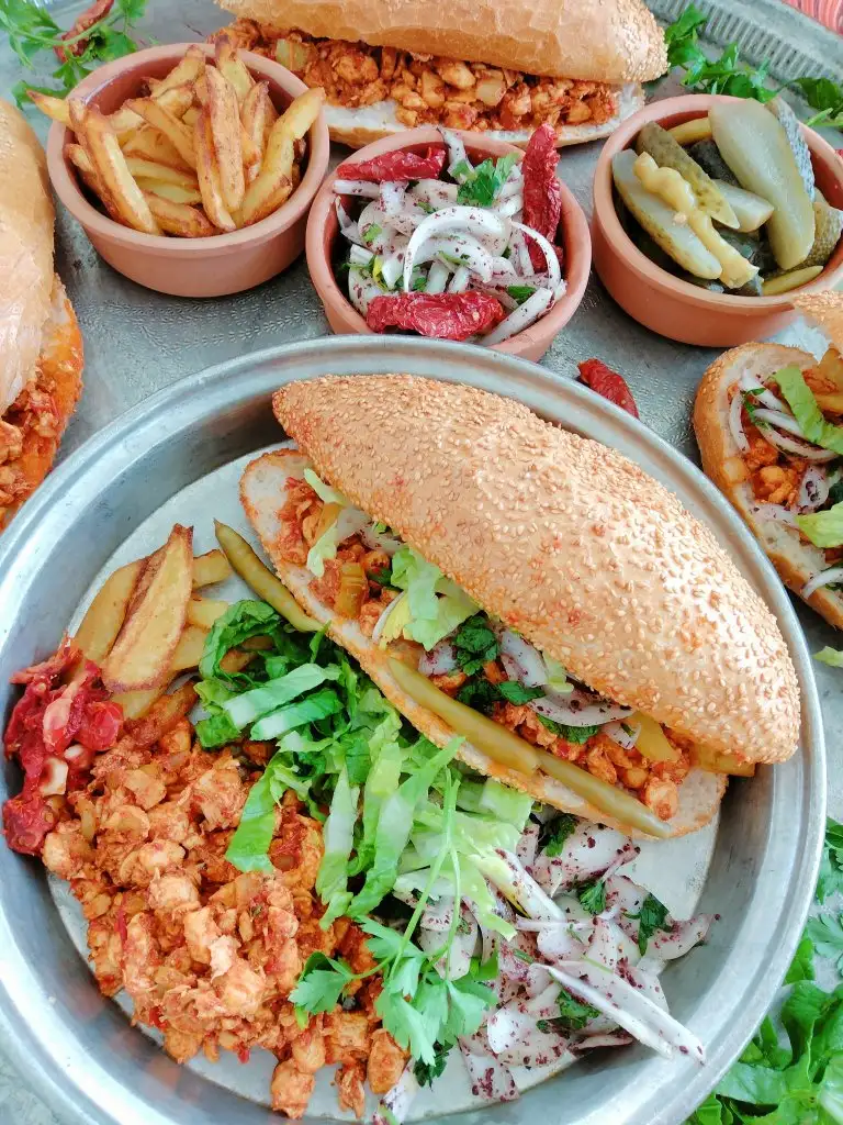 Marul,turşu,patates kızartması, maydanoz ve kuru domates ile servis yapacağız.